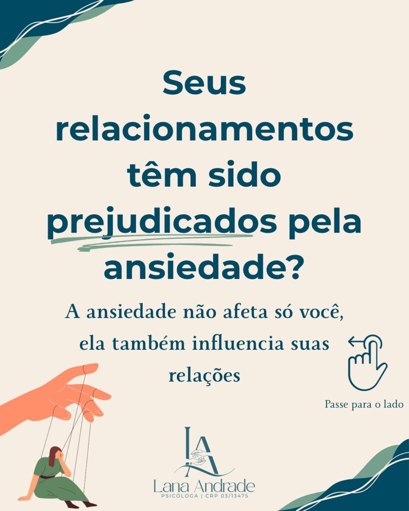 Sou Lana Andrade, psicóloga clínica formada em 2013, com 12 anos de experiência no atendimento de pessoas que convivem com a ansiedade e dificuldades nos relacionamentos. Sou especialista em psicoterapia relacional sistêmica e, desde a graduação, direcionei meus estudos para a compreensão dos impactos familiares na formação emocional.
